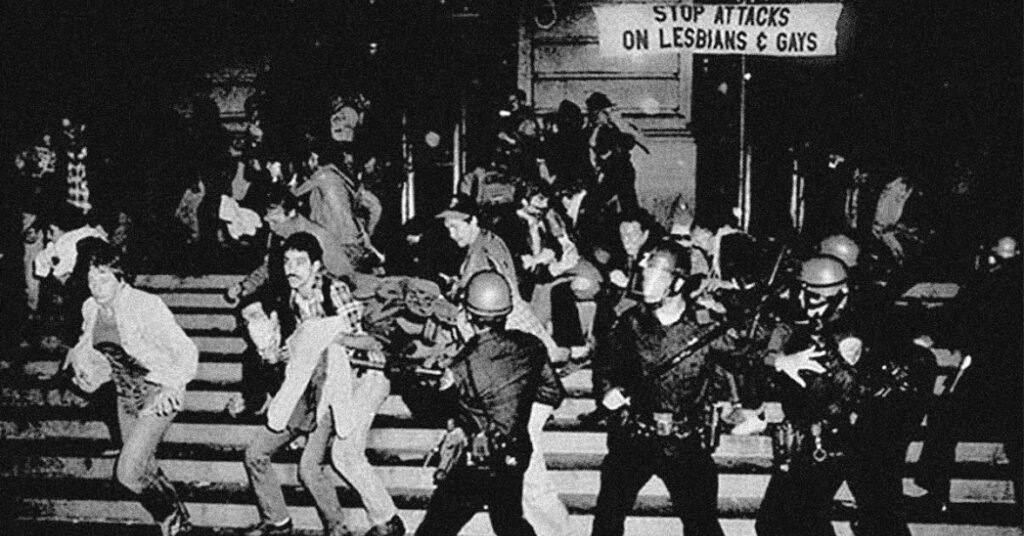 Le 28 juin 1969, à plus d’une heure du matin, la police entre dans le Stonewall Inn pour procéder au contrôle de toutes les personnes habillées avec des vêtements féminins. Mais ce soir-là, les clients refusent ces contrôles humiliants et s’opposent aux consignes des agents. Alors commencent deux jours d’émeutes où la police fait face à la résistance et à la colère d’une foule qui atteint plus de 1000 personnes, notamment des personnes transgenres et des travestis d’origine portoricaine ou afro-américaine, particulièrement frappés par la pauvreté et le racisme – en plus des lois homophobes et transphobes.