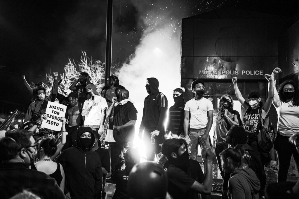 Le meurtre par la police de George Floyd – un homme noir non armé, qui a été menotté par quatre policiers à Minneapolis avant d’être étouffé – a déclenché une vague de manifestations dans tout le pays, s’intensifiant de manière incontrôlée dans plusieurs villes.